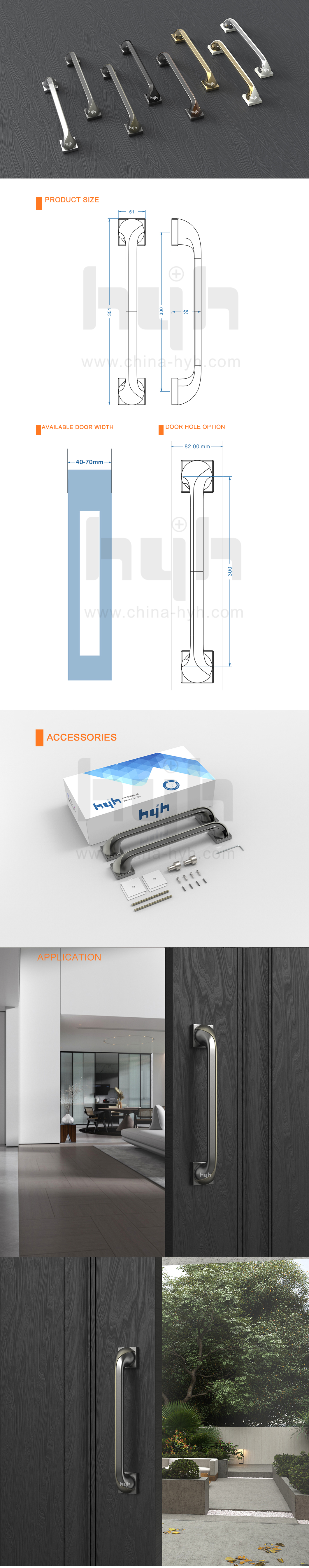 hyh Entrance Security Door Pull Handle Zinc Alloy Pull Handle