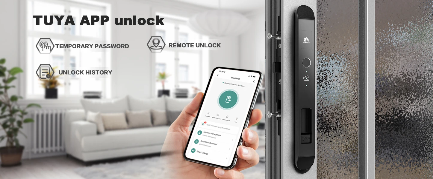 Unlocking Way : Key , Card,  Fingerprint , Tuya Bluetooth.