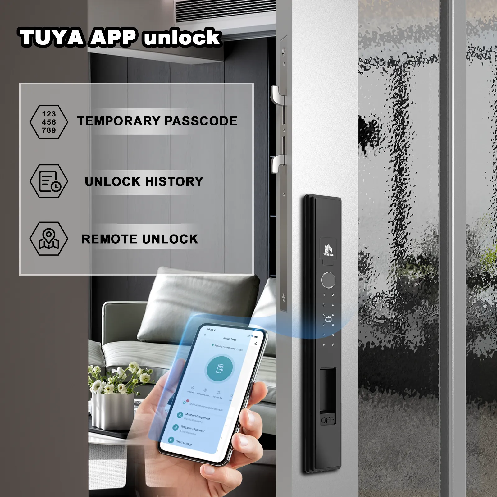Unlocking Way : Key , Card, Passcode , Fingerprint , Tuya Bluetooth.