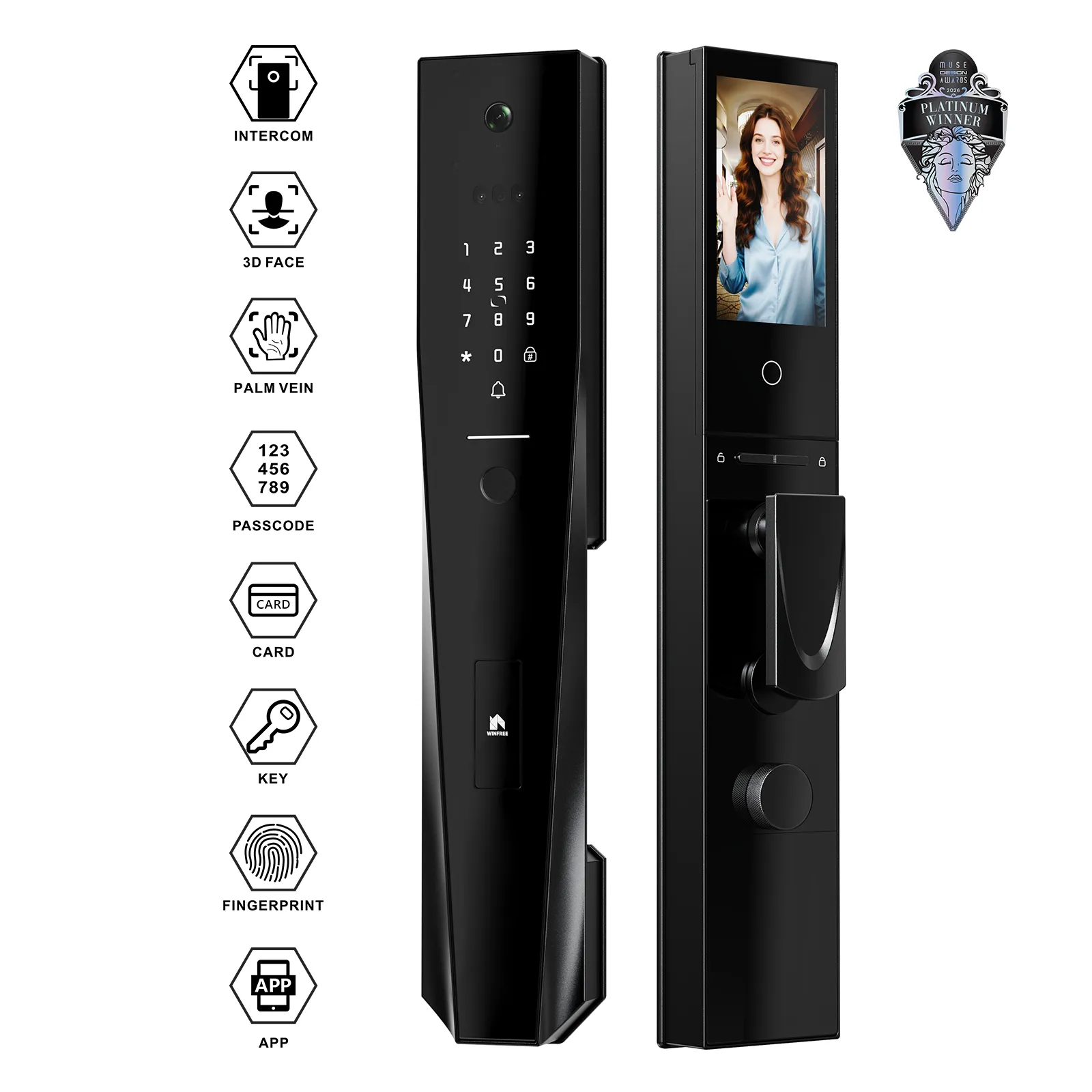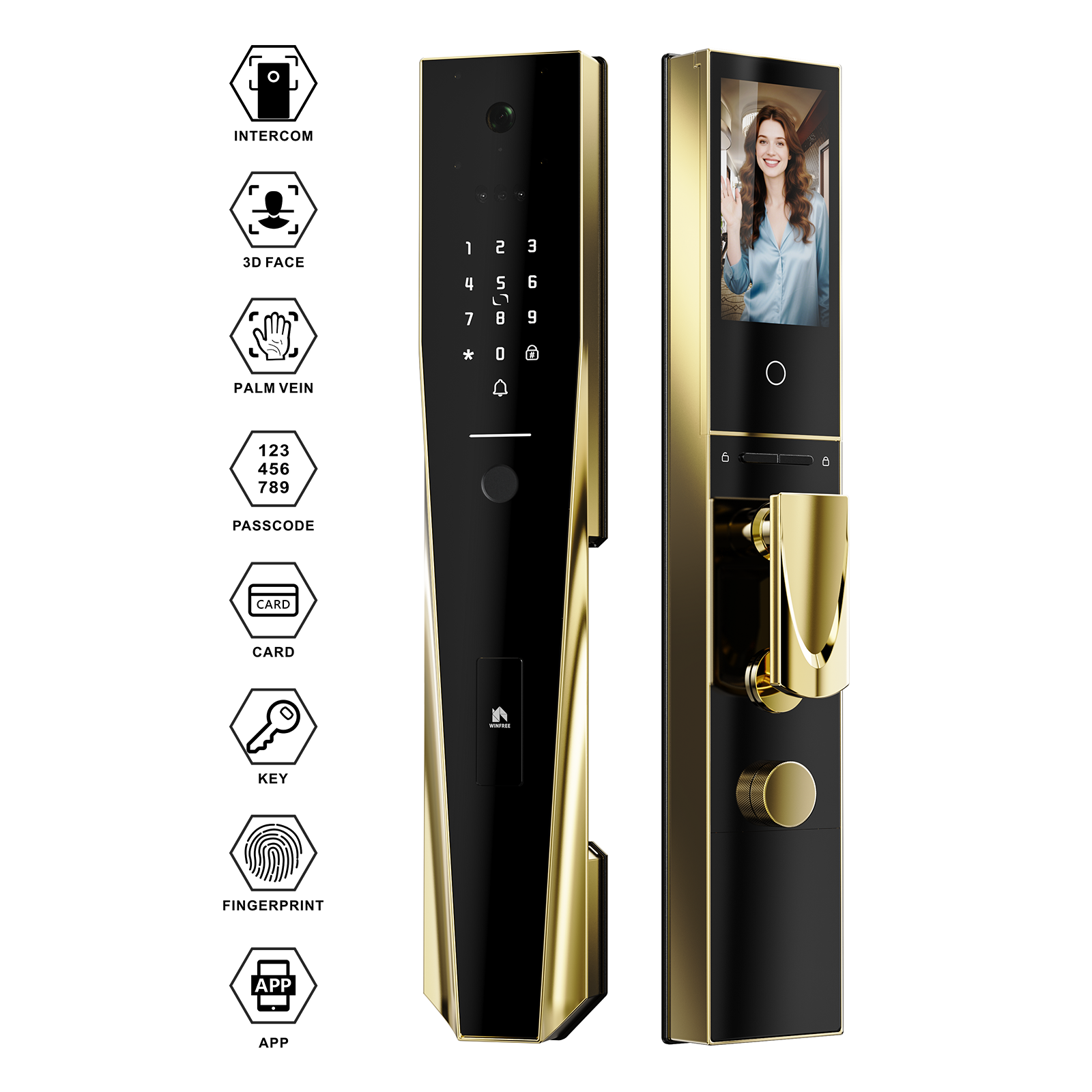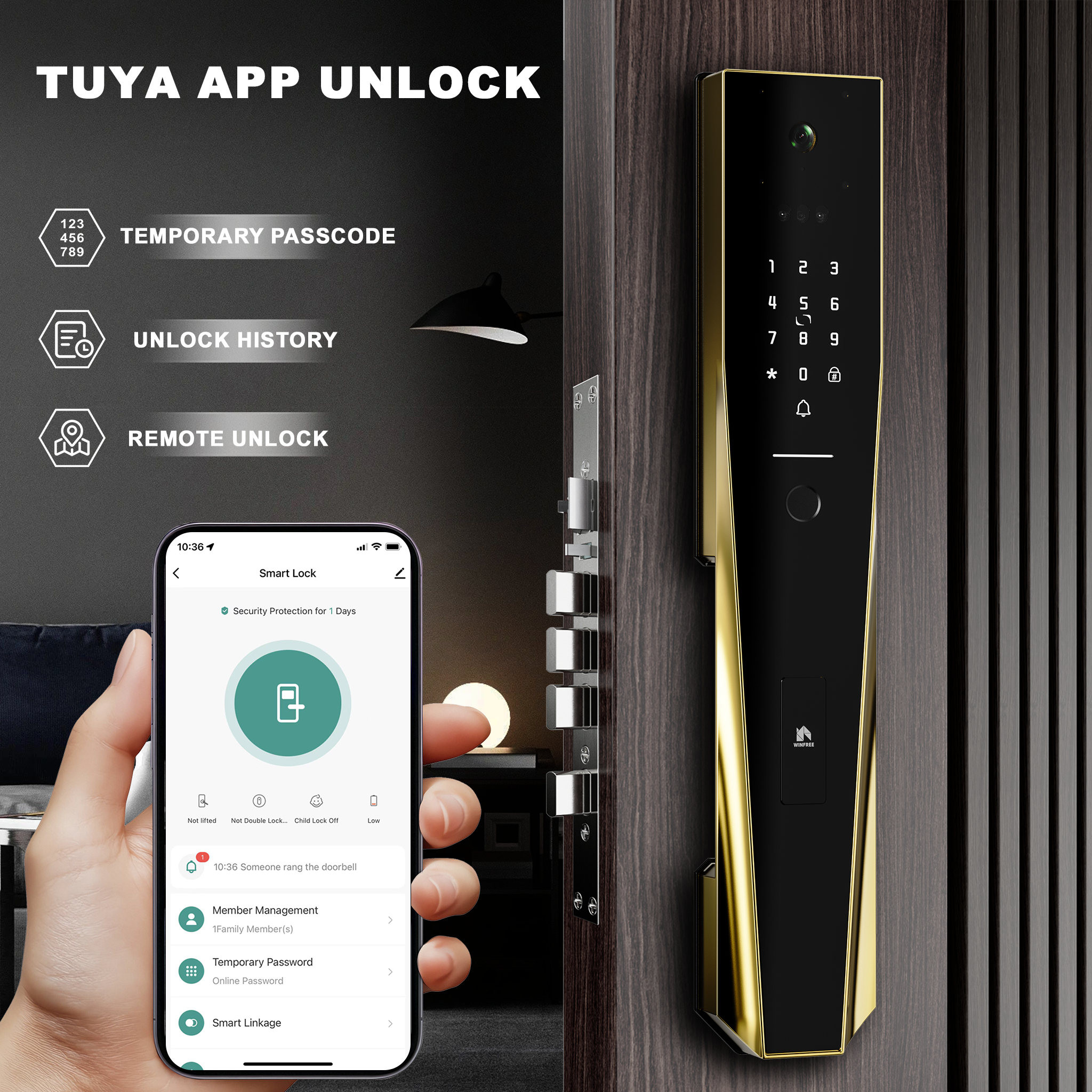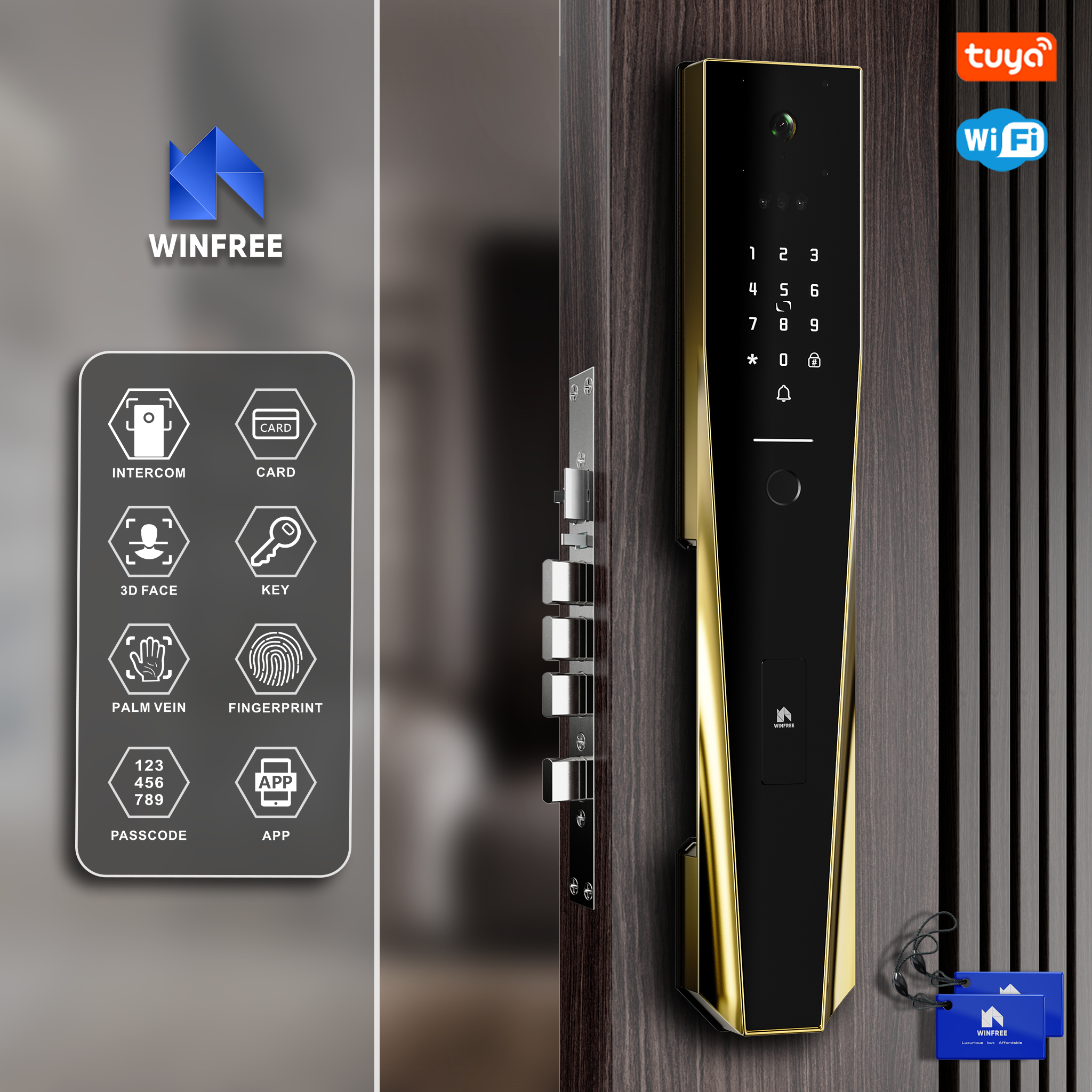 Winfree Tuya Wifi 3D face Automatic Intercom Smart Main Door Lock