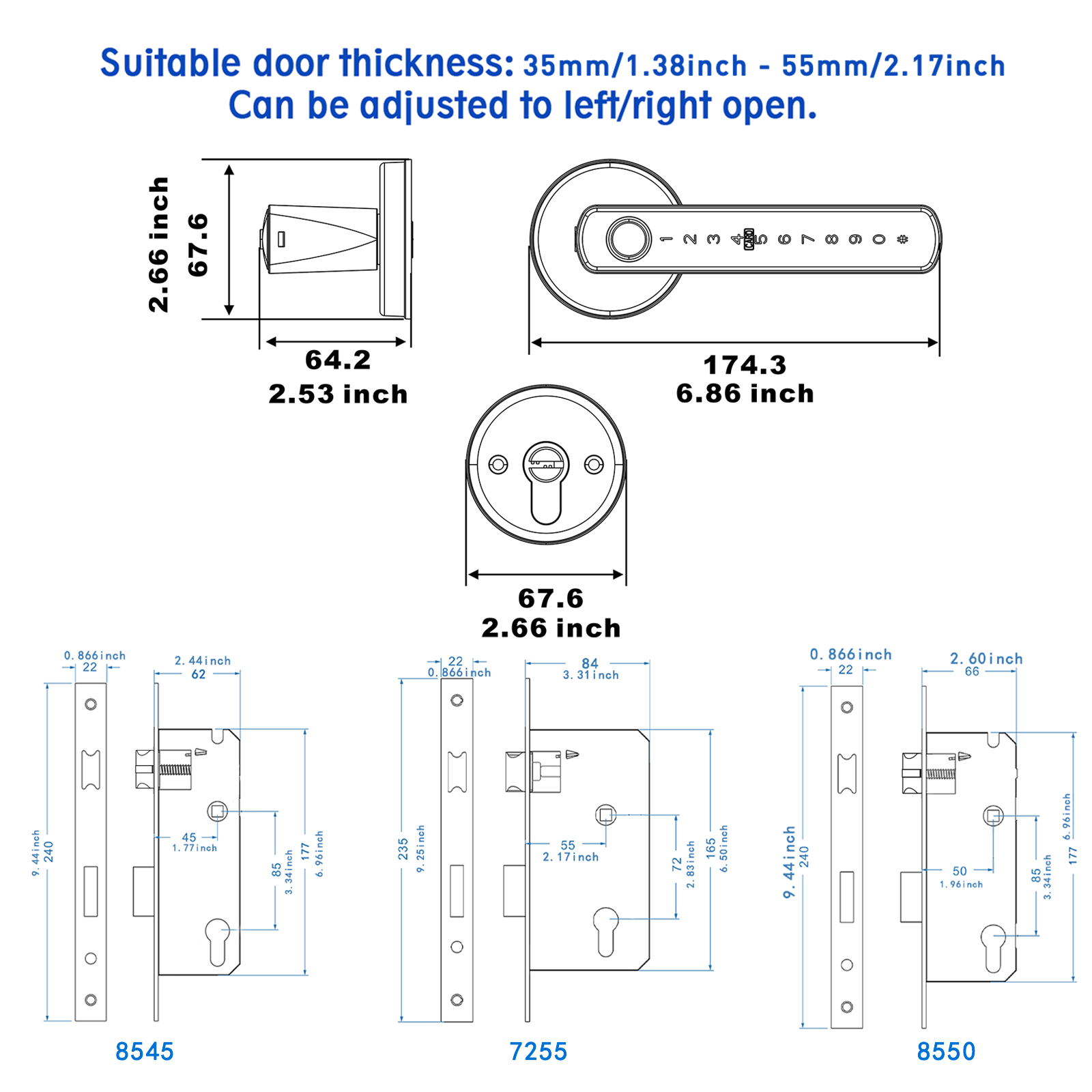 Door thickness: 35-55mm