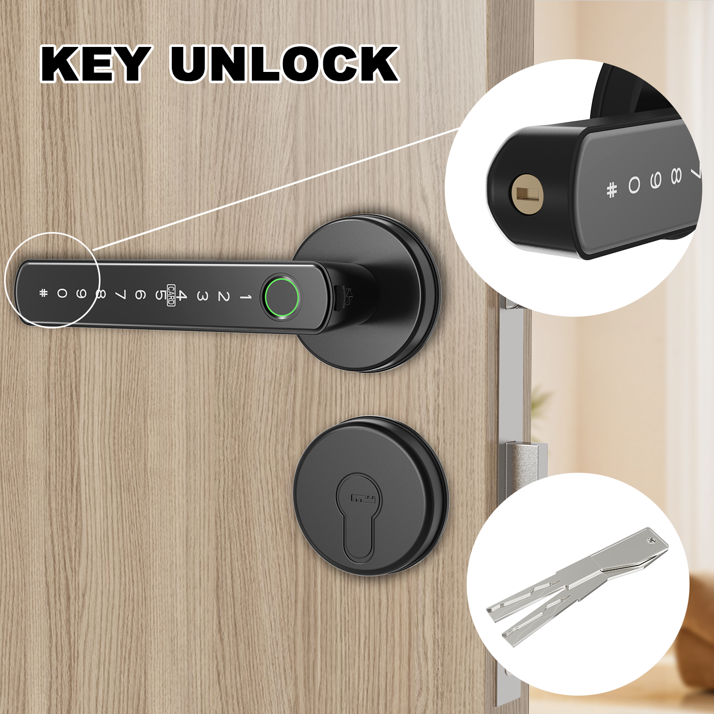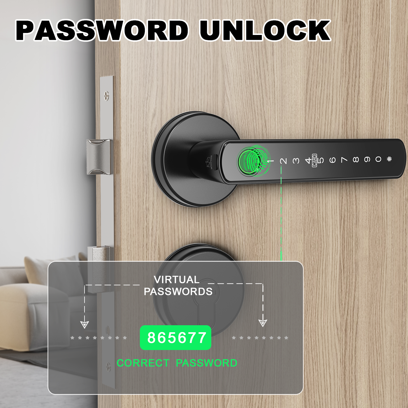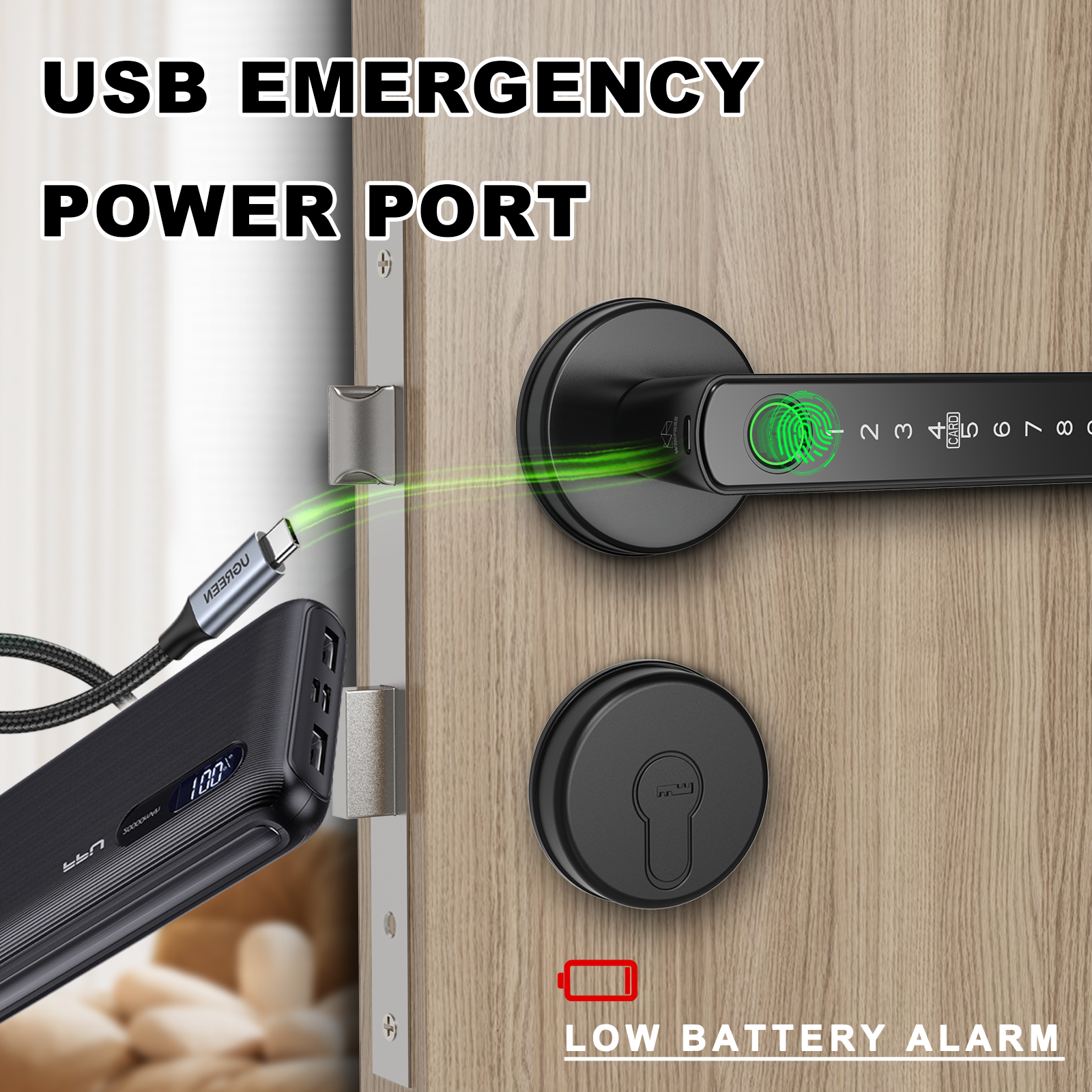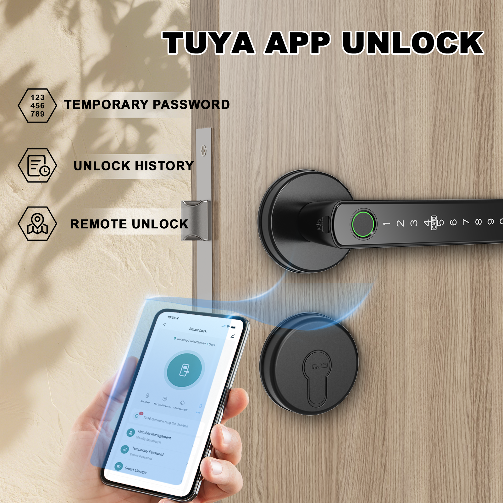 Unlock way: Fingerprint, passcode, card, key, Tuya app