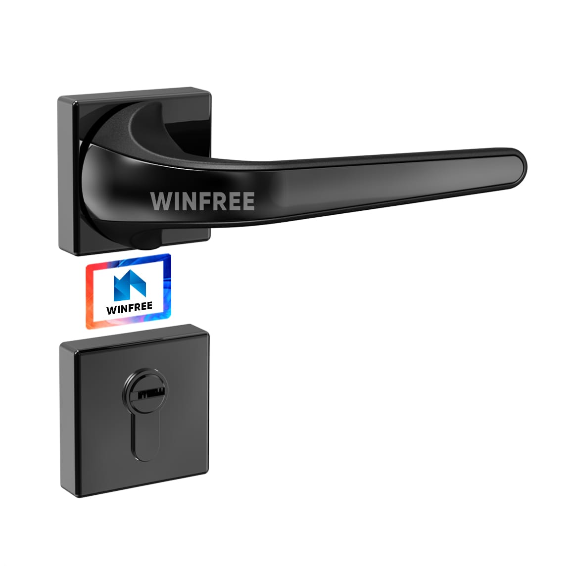 WINFREE Door Handle Rosette Door Lock with European Mortise for Wooden Door